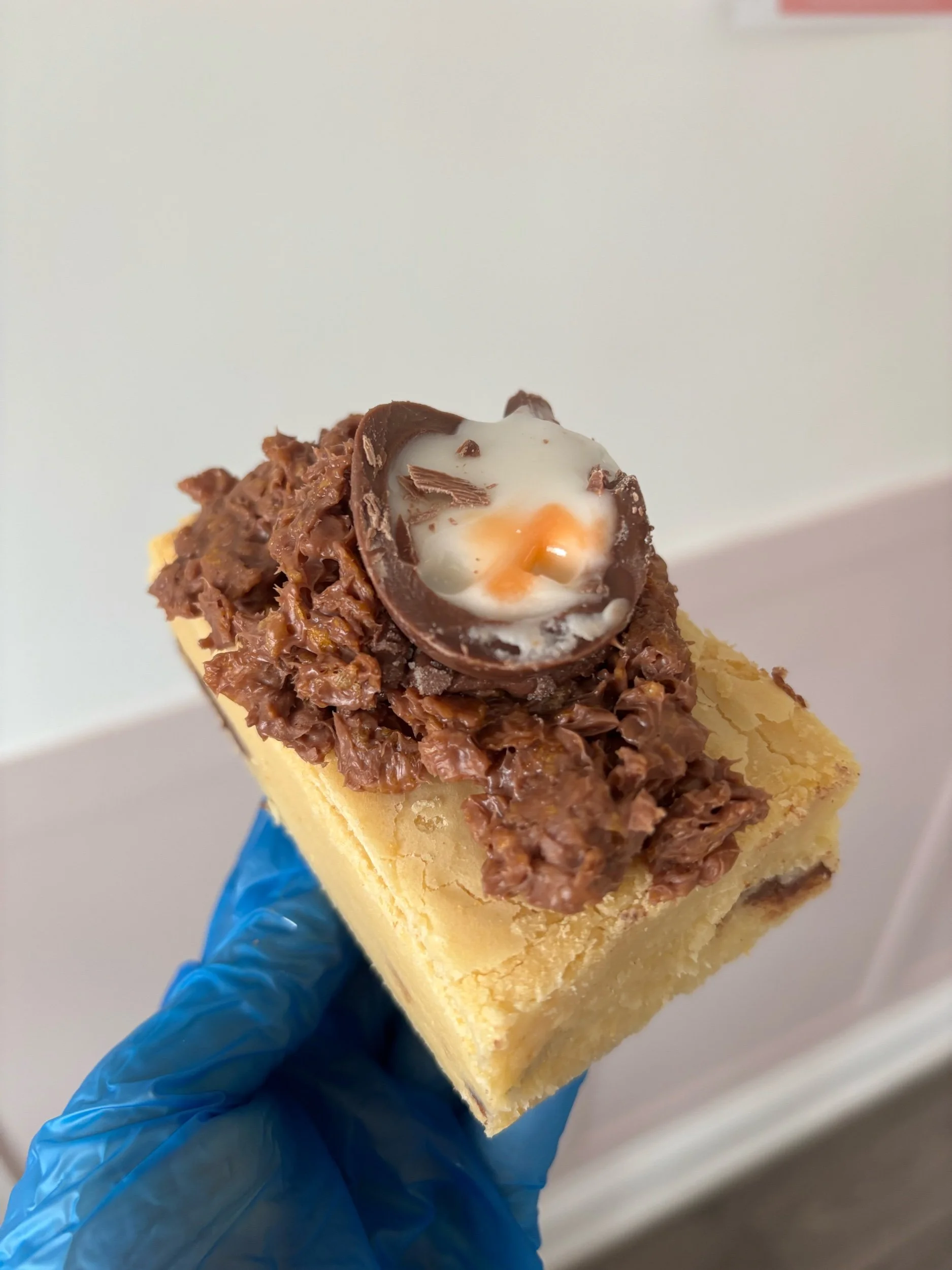 Dairy Milk Cornflake Creme Egg Blondie - GLUTEN, EGGS, SOYA & MILK.